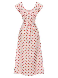 White 1930s Polka Dot Sleeveless Dress
